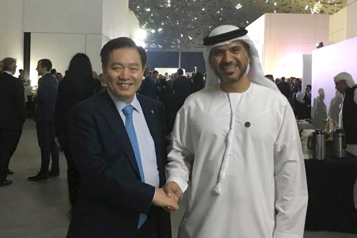 On January 15, during an industry gala held at the Louvre Abu Dhabi for the “2018 Sustainability Week” in Abu Dhabi of UAE, Zhu Gongshan, the President of the Global Solar Council and Chairman of the GCL Group, discussed business, the future, life, and art with Awaidha Murshid Almarar, the Minister of Energy of UAE.