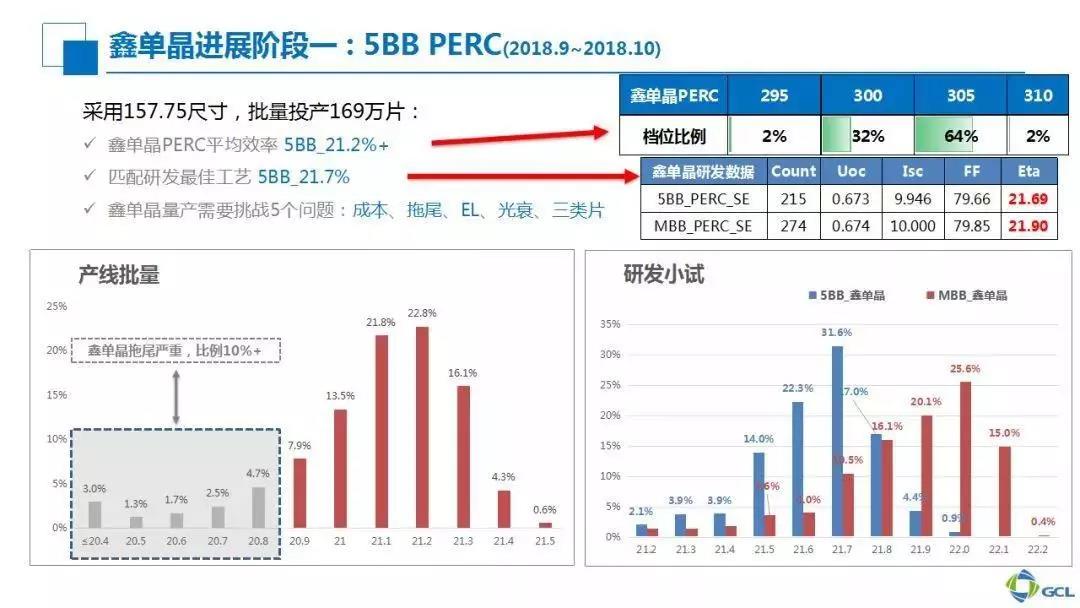 l 2019 多晶PERC量产平均效率21.5%,鑫单晶PERC量产平均效率22.3%。