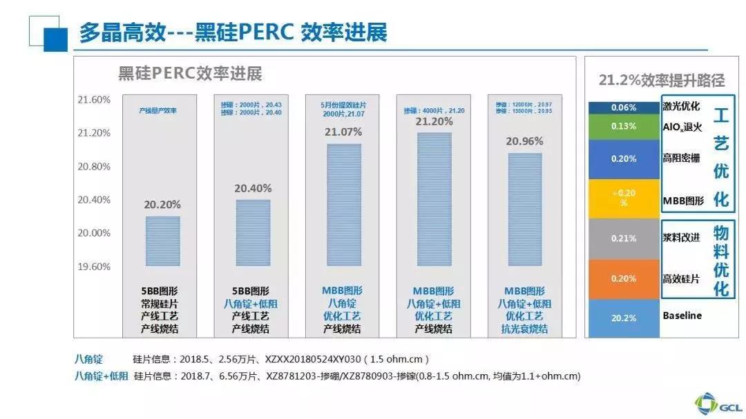 l 多晶黑硅PERC目前量产平均效率可达到21%,对应60片组件功率300W+。