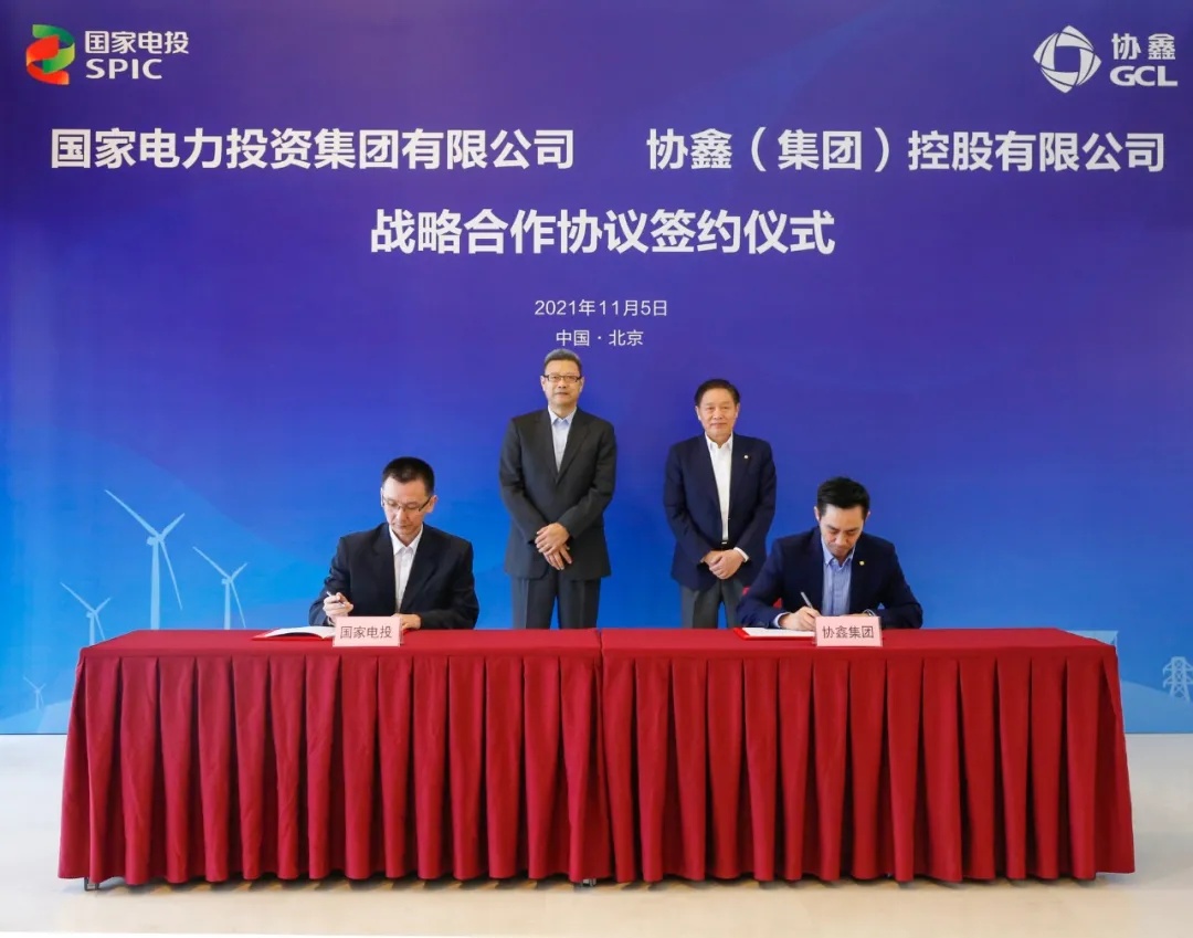 11月5日,国家电力投资集团与协鑫集团达成全面战略合作框架协议并正式签约。双方一致同意,构建全面战略合作关系,发挥各自优势,开展全面深入合作,构建国民合作典范,共同打造一批国内领先、国际一流的能源转型样板和可再生能源应用示范基地,推进我国以新能源为主体的新型电力系统建设,加快实现“3060”“碳达峰”“碳中和”战略目标。