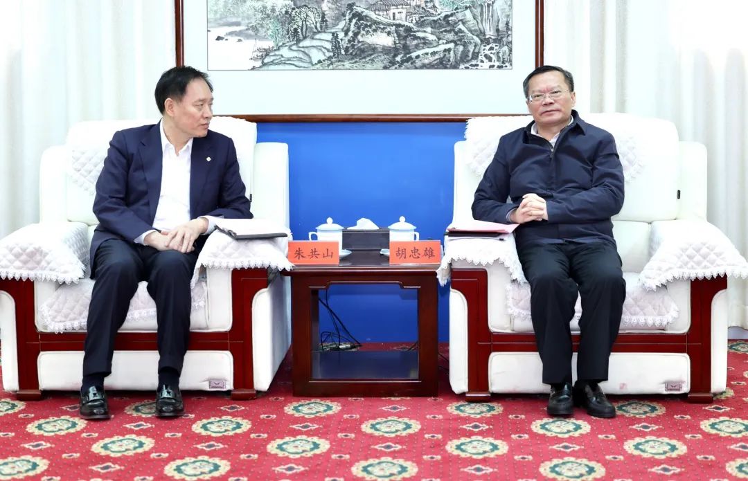 2月24日,贵州省委常委、贵阳市委书记、贵安新区党工委书记胡忠雄在筑会见协鑫(集团)控股有限公司董事长朱共山一行,双方就加强战略合作进行深入交流。